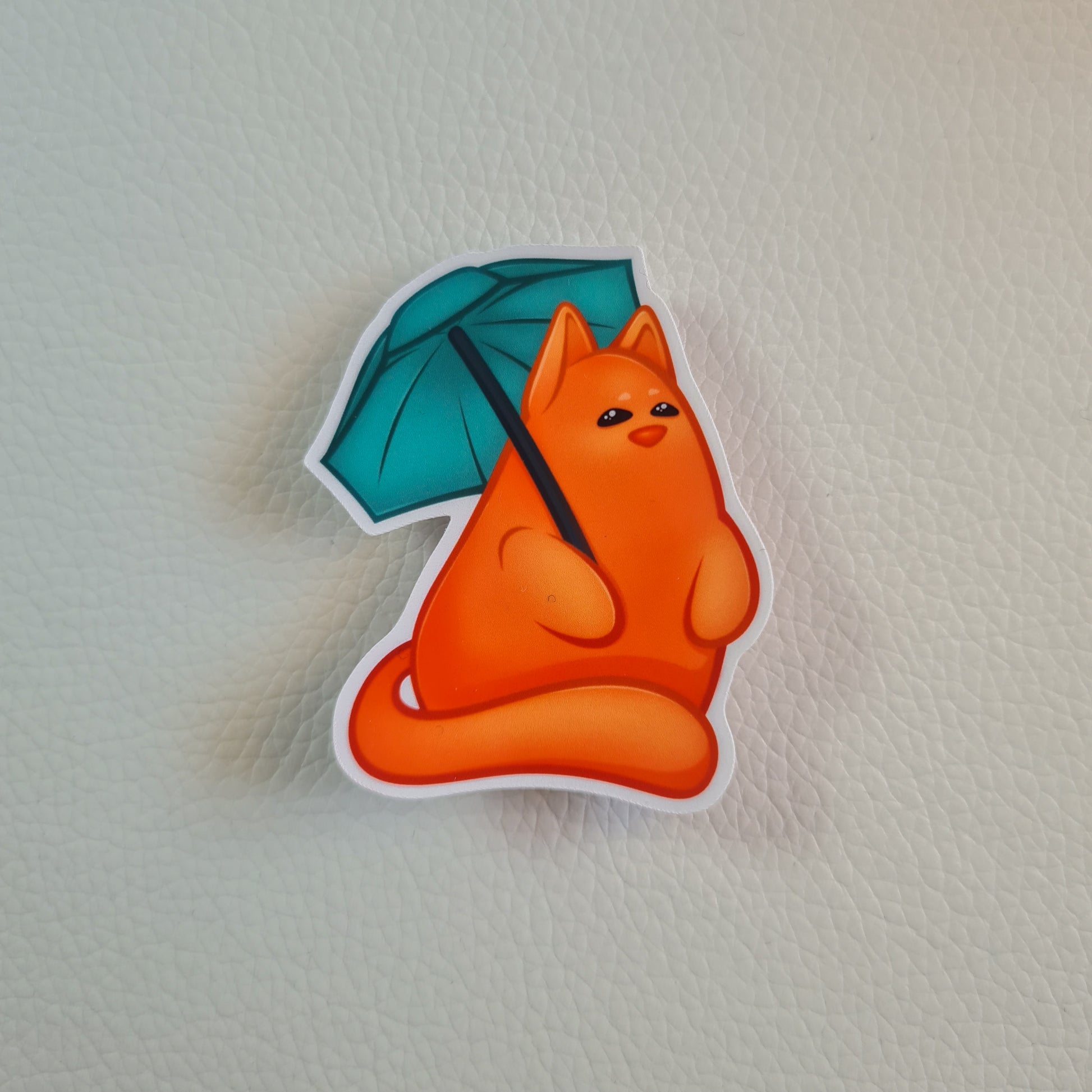 Andere Katzen flüchten panisch unters Sofa, aber diese orange Miesekatze bleibt unbeeindruckt. Gemütlich sitzt sie da, während ihr treuer, türkiser Regenschirm jede einzelne Tropfen-Attacke abwehrt. Kein hektisches Rennen, kein beleidigtes Miauen nur absolute Gelassenheit.
